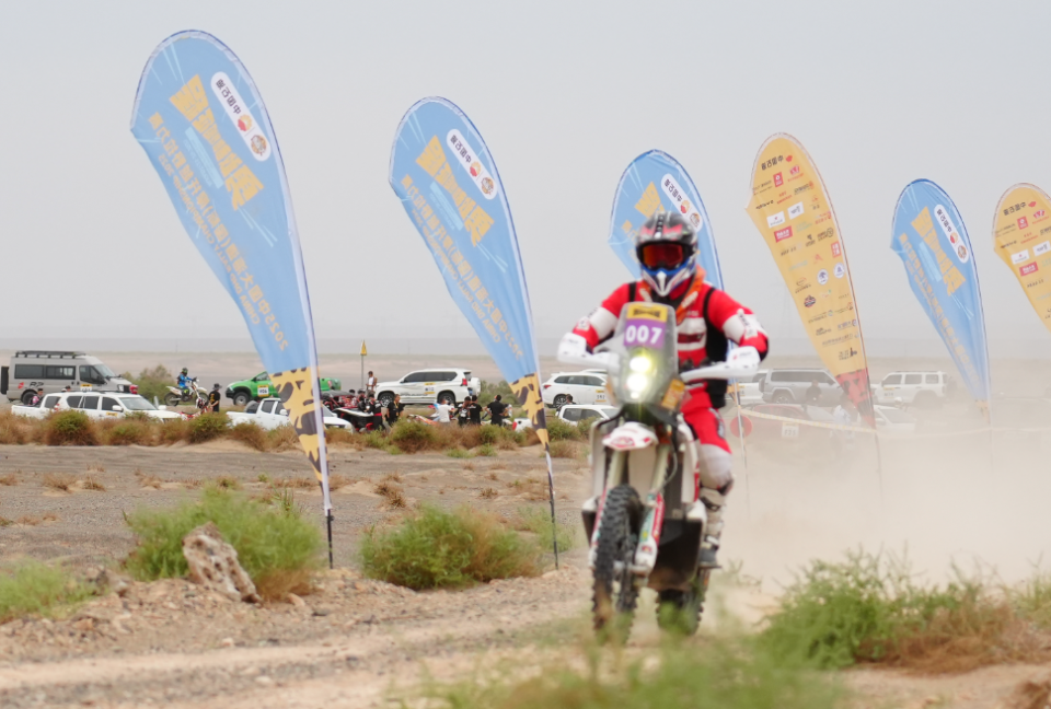 8月25日上午,2025中国大海道(国际)摩托越野拉力赛魔鬼城赛段(赛段编号SS2)激情开赛。近百名越野摩托车手驾驭爱车在此集结,先后从发车点绝尘而去,开启一场穿越158公里雅丹地貌与戈壁路面的极限挑战。