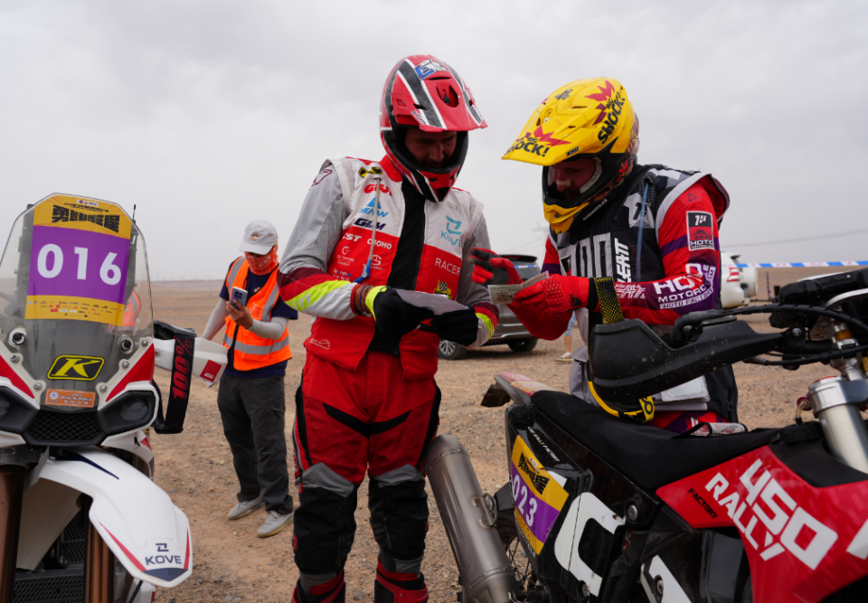 拥有16年拉力赛经验、从2010年就开始参加环塔拉力赛的“老将”方明集来自广西,他说:“今天我整体节奏比较快,跑得很过瘾的,一些暗坑比较危险,路书标注得比较精确,按路书跑更安全。”